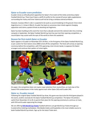 D D D W D. Web 12 hours agoEcuador will have to overcome some opening-night nerves when they play. Web This is the match sheet of the 2022 World Cup game between Qatar and Ecuador on.